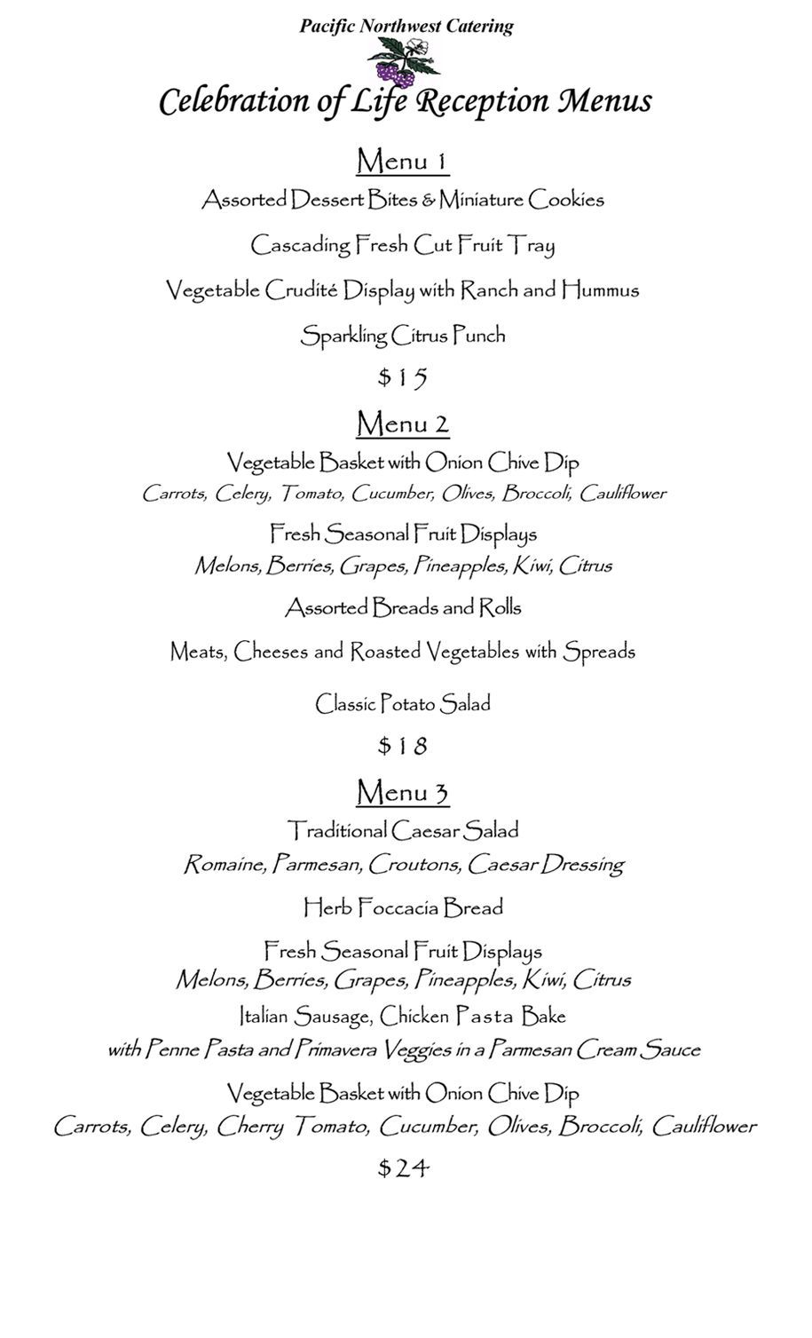 At Northwest Pacific Catering, we understand that during life’s most challenging moments, the need for compassion and support is paramount. That is why we are proud to offer a thoughtfully curated 'Celebration of Life' menu that is designed to provide comfort and nourishment during this difficult time. Our menu reflects our commitment to honoring the memories of loved ones while fostering a sense of togetherness and solace among family and friends.